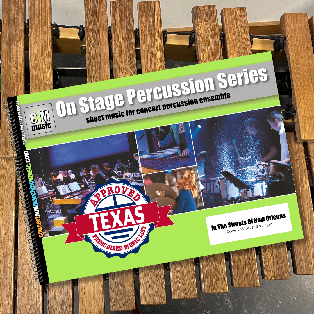 Instrumentation: Timpani, Snare Drum, Bongos, Timbales, Floor Tom, Splash Cymbal, Kick Drum, Concert Toms (4), Cymbals, Concert Bass Drum, Marching Bass Drum, Drum Set, Suspended Cymbal, Vibra Slap, Shaker, Woodblock, Tambourine
